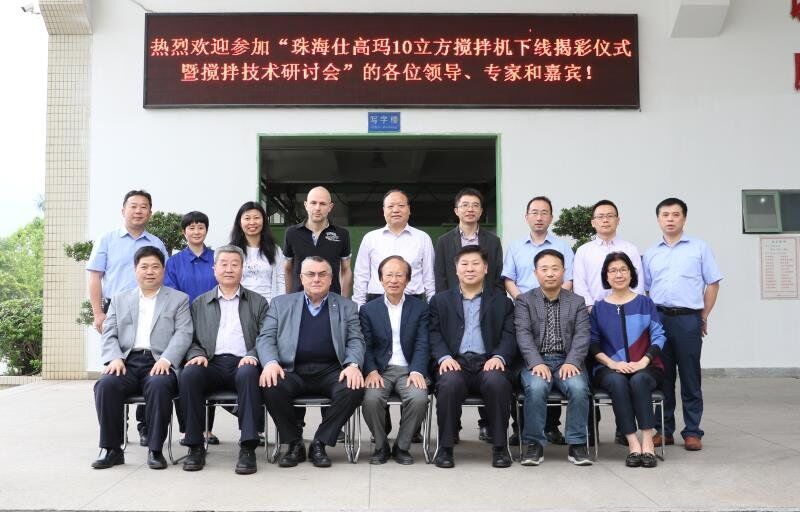 2018年4月18日,珠海仕高瑪公司10立方攪拌機下線揭彩儀式暨攪拌技術(shù)研討會在珠海仕高瑪公司舉行,中國工程機械協(xié)會混凝土機械分會符忠軒會長、長安大學馮忠緒教授、趙利軍博士、廣東長大公路工程公司楊東來總工程師、河南萬里路橋李冠峰總工程師、許昌德通特種混凝土公司孟超總經(jīng)理等領(lǐng)導(dǎo)、專家和嘉賓應(yīng)邀出席儀式和研討會,珠海仕高瑪公司股東黃志輝先生、意大利SICOMA公司董事長Mr. Galletti、總工程師Marco、珠海仕高瑪公司總經(jīng)理郗俊峰先生、財務(wù)總監(jiān)唐志敏女士及公司技術(shù)研發(fā)團隊、生產(chǎn)團隊、銷售團隊、售后團隊參加本次活動。
