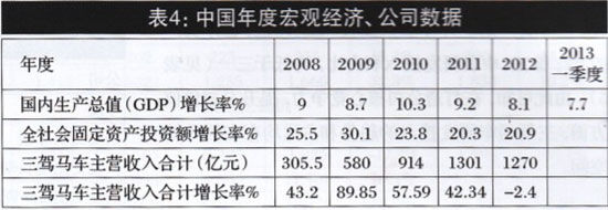 在連續(xù)多年保持高速增長之后,三駕馬車內(nèi)部約宅因素增多、外部環(huán)境嚴(yán)峻等狀況,均在年報中得到反映.其多項財務(wù)指標(biāo)出現(xiàn)回落趨勢。企業(yè)發(fā)展到于—個臨界點(diǎn),調(diào)整發(fā)展戰(zhàn)略的時間窗口已經(jīng)開啟。
