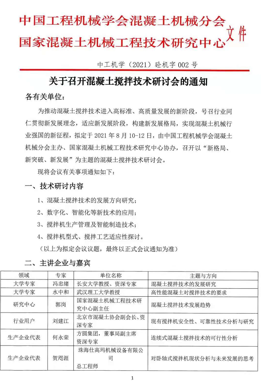 【通知】關于召開混凝土攪拌技術研討會的通知
