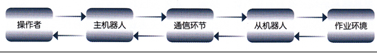 工程機器人研究的現狀表明,由于受到機構、控制、傳感器以及人工智能水平的限制,研究出能在未知環境中全自主方式工作的機器人是目前難以實現的目標。因此,目前在核工業、搶險救災等高危、惡劣的環境中被廣泛應用的是遙操作機器人。遙操作機器人主要分為視覺臨場感遙操作機器人、力覺臨場感遙操作機器人、觸覺臨場感遙操作機器人及運動覺臨場感遙操作機器人等。基于臨場感的遙操作機器人系統原理如圖3所示,它由操作者、主機器人(手控器)、通訊環節、從機器人和作業環境5部分構成。在臨場感系統工作過程中,由操作者向主機器人發出操作命令(如位置指令)操作主機器人運動,主機器人的運動信息通過通訊環節傳給遠方的從機器人,從而控制從機器人的運動;當從機器人同環境交互時,從機器人的運動信息(如視覺、力覺、觸覺等信息)又通過通訊環節反饋給本地主機器人,使操作者對于現場作業情況有了有效的感知,從而能夠及時做出準確判斷,發出相應的操作命令,控制遠方從機器人準確、高效地完成作業任務。目前,基于視覺臨場感的工程機器人遙操作控制主要是用攝像機獲取現場的視頻圖像并回傳到主控端,操縱者通過監視器來完成對工程機器人的操作任務。