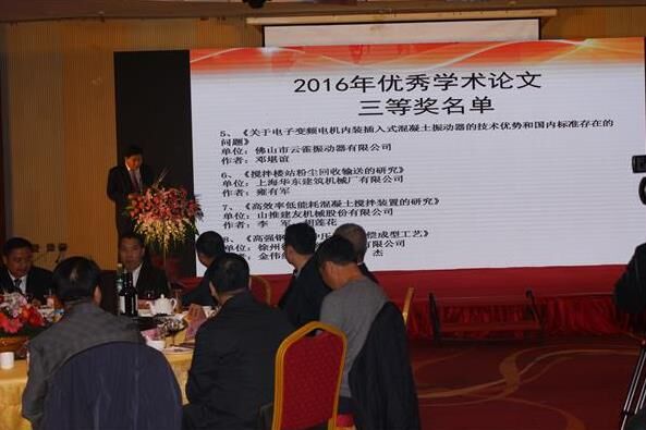 晚宴進行過程中,中國工程機械工業(yè)協(xié)會混凝土機械分會符忠軒會長上臺宣讀了《關(guān)于2016年學(xué)術(shù)論文評獎結(jié)果的通報》,并進行了優(yōu)秀論文頒獎活動。